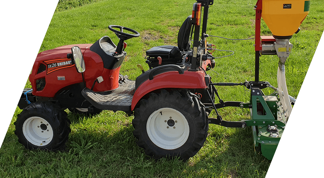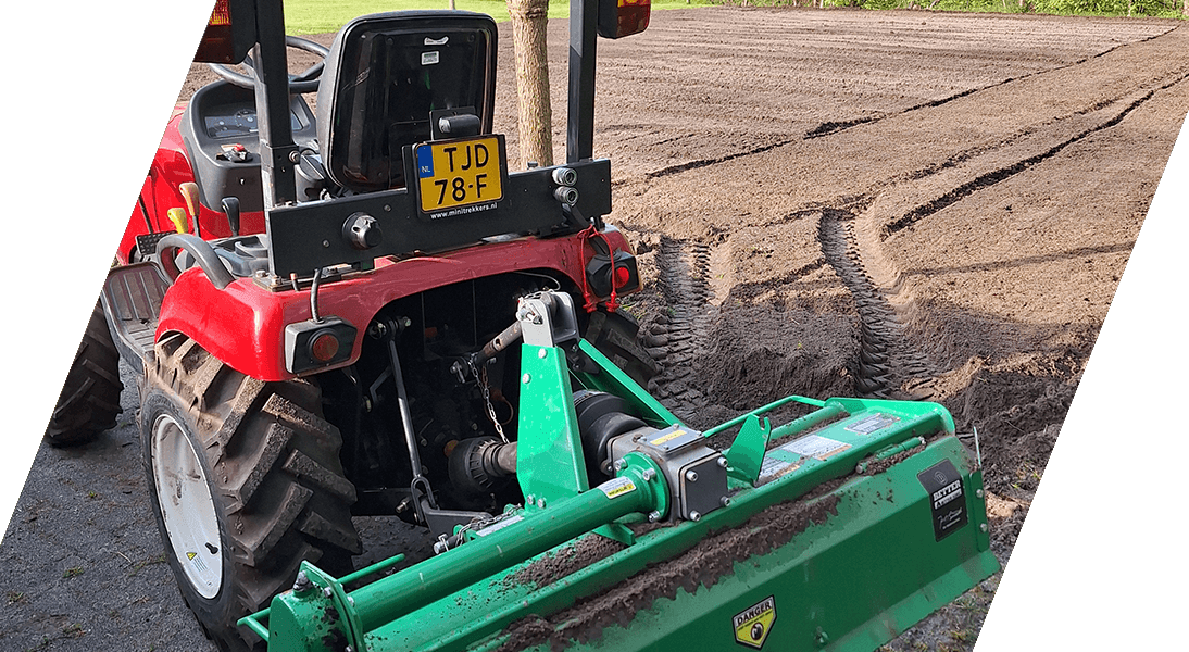 Zaaien en maaien, Frezen, Kilveren, Zaaien van gras en ook bloemen en kruiden mengsels, Maaien, Klepelen, verticuteren en bladzuigen met opvang.
